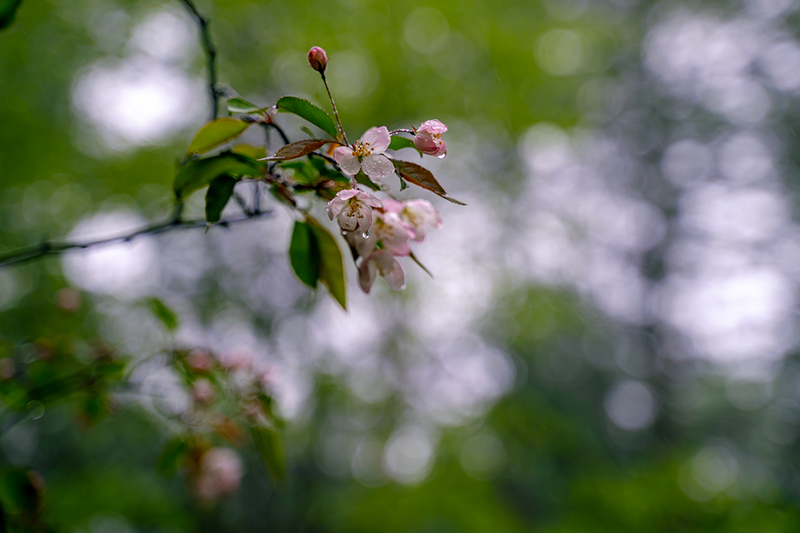 近处的花草树木,在雨水的洗礼下更加鲜艳。