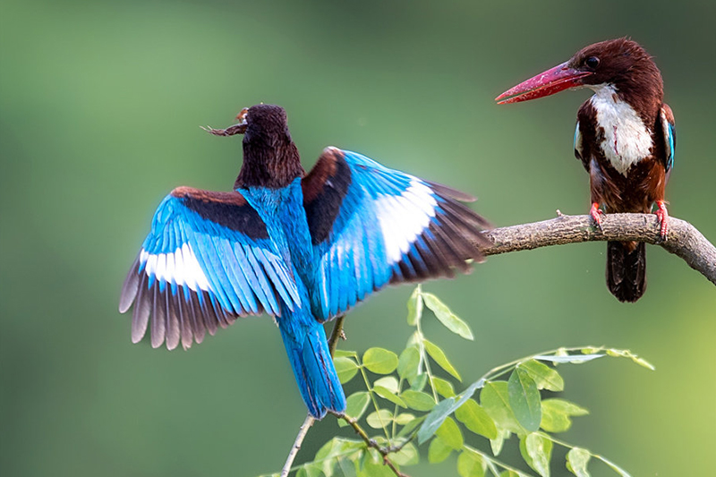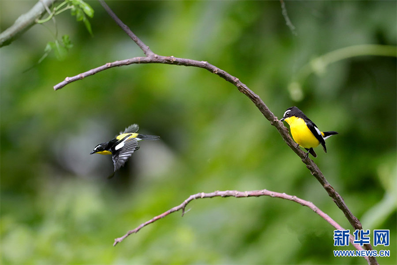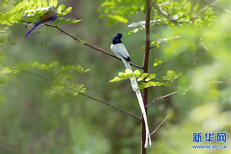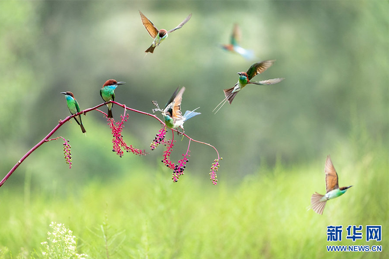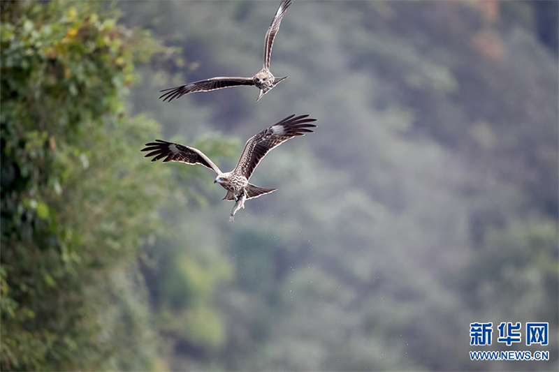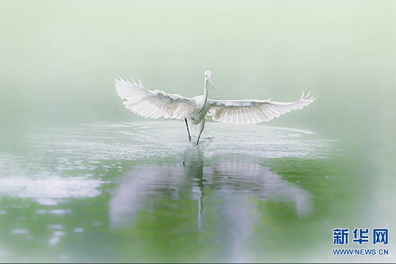 河南省信阳市新县位于南北气候过渡带,地跨长江、淮河两大流域,植被覆盖率达95%,森林覆盖率达76.7%。得天独厚的自然生态环境,吸引了蓝喉蜂虎、蓝翡翠、戴胜等众多鸟类在这里“安营扎寨”,绘出一幅生动和谐的自然画卷。白鹭在翩翩起舞