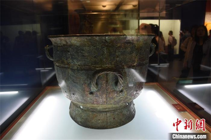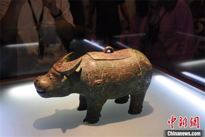 图为殷墟博物馆内展出的青铜器——亚长牛尊。