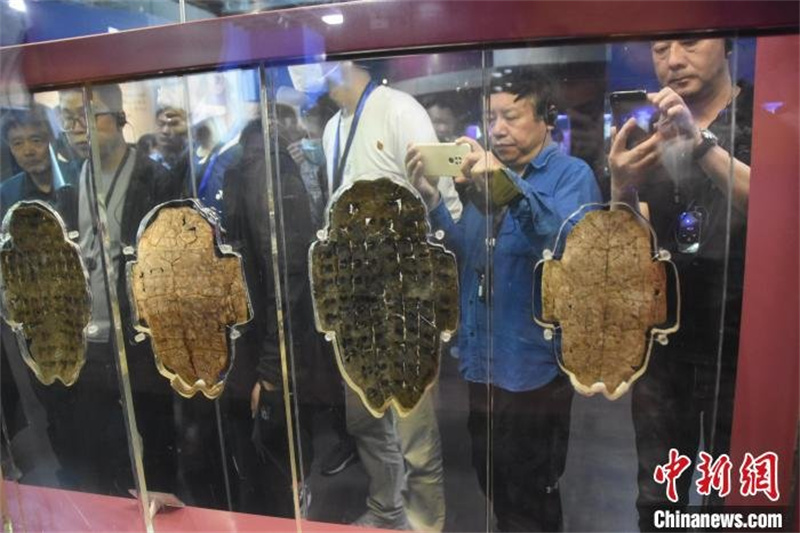 图为殷墟出土的“刻辞卜甲”甲骨文。