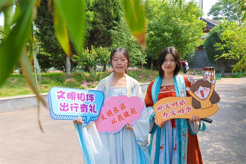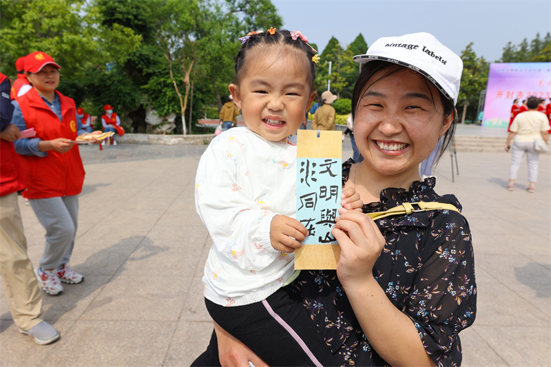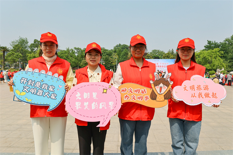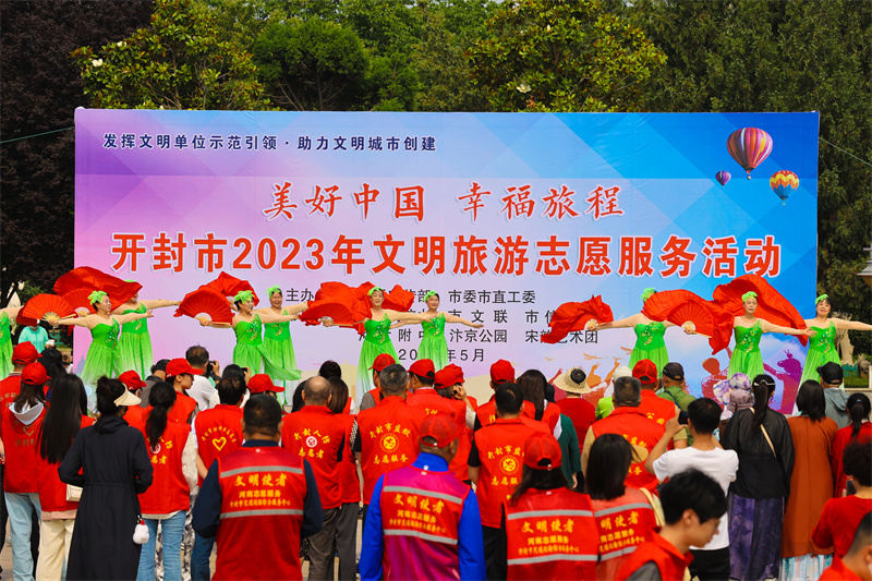 在第13个中国旅游日到来之际,为全面提升市民旅游文明程度,推动文化旅游融合,由市委宣传部、市委市直工委主办的“美好中国 幸福旅程”开封市2023年文明旅游志愿服务活动于5月18日上午在汴京公园举行,活动现场,精彩节目引得观众拍手叫好,现场书写赠送的书签也深受市民喜爱;此次活动结合我市优秀传统文化资源,创新表达,让文明旅游成为市民的生活方式,融入市民的幸福生活中。