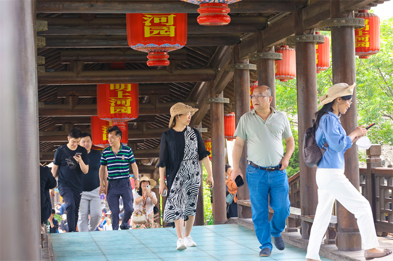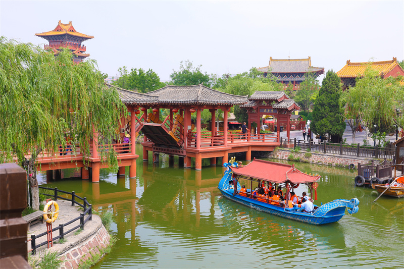 5月19日是第13个“中国旅游日”。当日,不少游客到开封景区看节目、坐游船、赏美景,享受休闲时光。