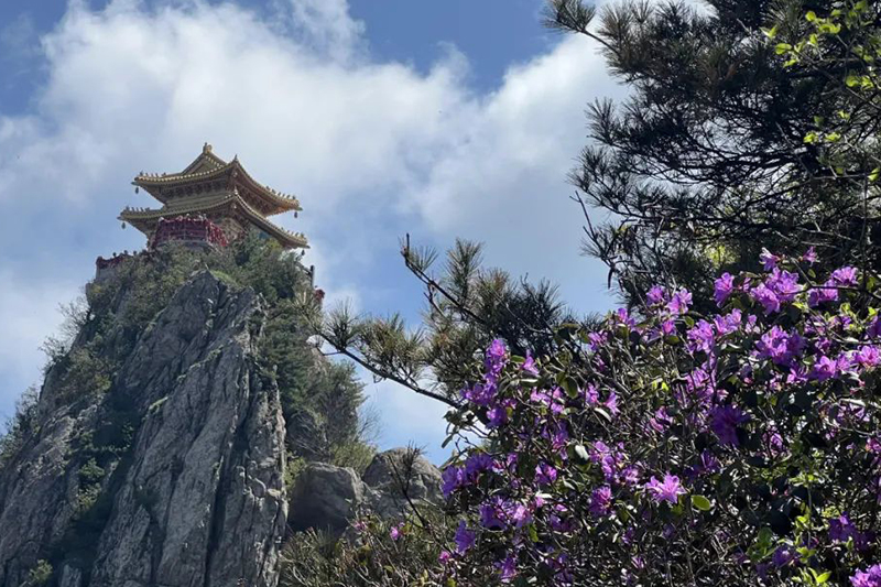 老君山海拔2217米,山顶有两种杜鹃,一种呈紫色的秀雅杜鹃,分布在老君山2000米以上的山坡上,十里画屏等,花期4~5月。