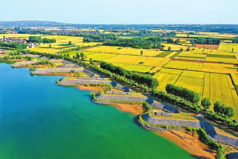 5月22日,洛阳市孟津区白鹤镇黄河生态廊道沿线的小麦即将成熟,田野里遍地金黄。