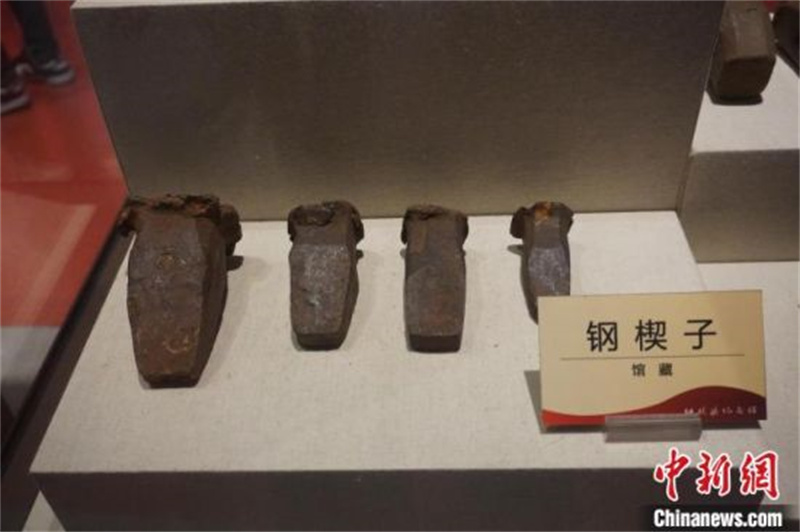 在红旗渠纪念馆,采访团成员通过观看展览,了解红旗渠的修筑故事。图为红旗渠纪念馆陈列的当年修渠工具。 韩章云 摄