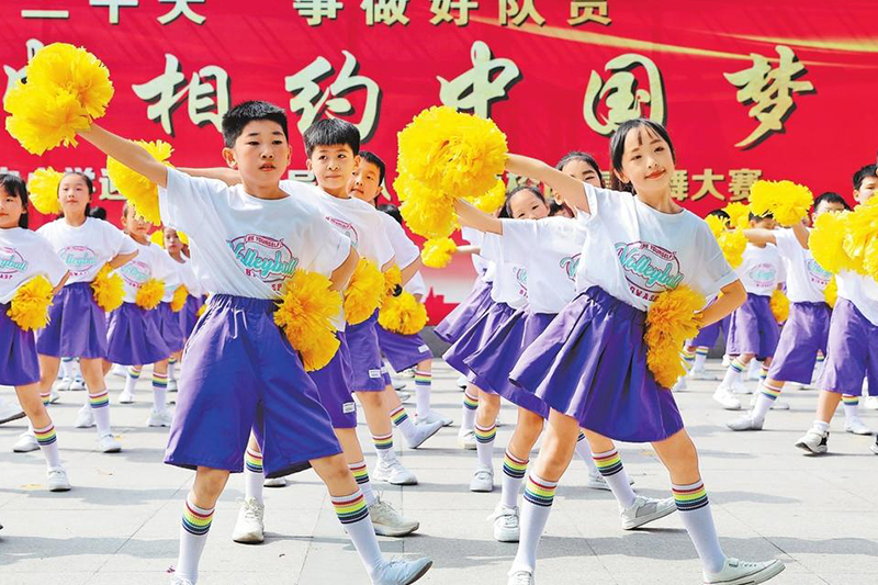 5月31日,温县城内小学学生在参加集体舞比赛。 徐宏星 张倩 摄