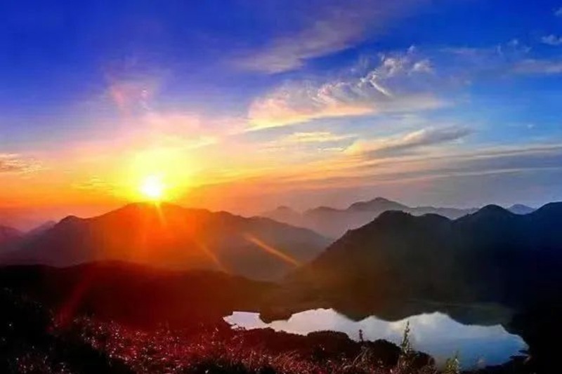 傍晚时分,在山头的一角看夕阳西下,欣赏那浓墨重彩的日落橙。