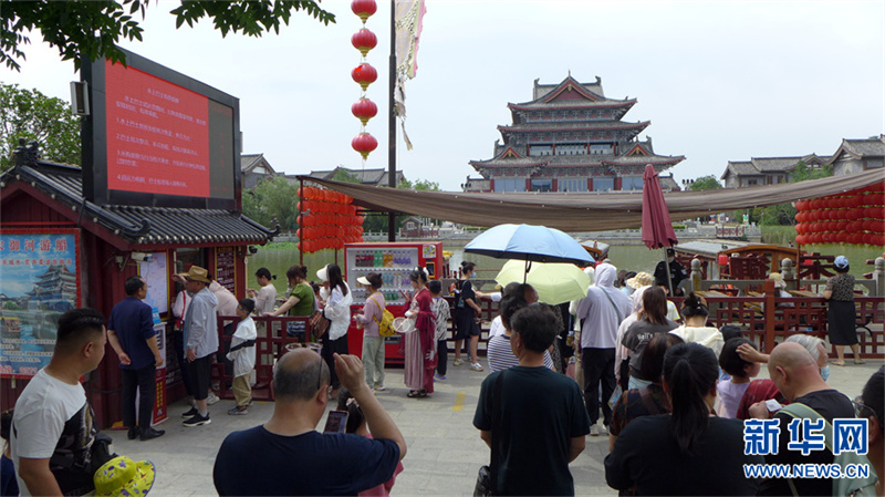 6月11日,河南省开封市七盛角码头,人们准备乘坐“水上巴士”游览大宋御河。