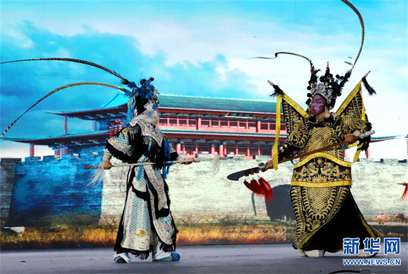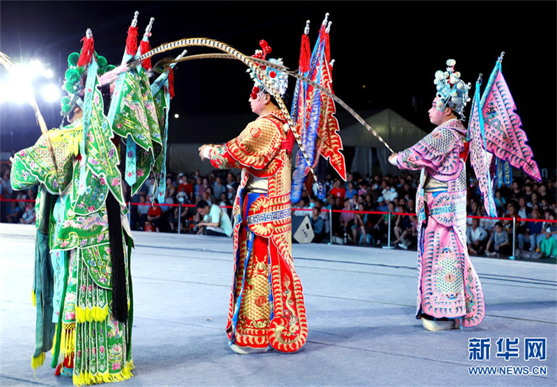 6月12日晚,河南省南阳市解放广场,南阳市内乡宛梆剧团的演员在表演传统剧目《樊梨花征西》。宛梆是流行于河南省南阳市的地方剧种,已有近400年的历史。2006年,宛梆入选国家级非物质文化遗产代表性项目名录。多年来,河南省南阳市各宛梆剧团的演员扎根基层,每年演出800多场,让百姓在家门口感受非遗戏曲的艺术魅力。