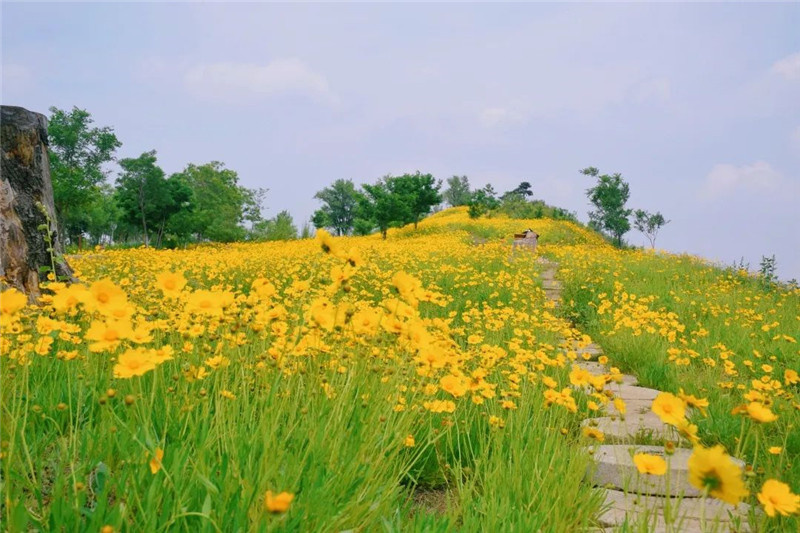 晴空万里,万物复苏。近日,洛阳万安山山顶公园大片金鸡菊盛放,万安山犹如披上金色盛装,花海漫山遍野、摇曳生姿,成为一道亮丽的风景线。目前花海主要集中在万安山山顶公园飞行营地及山路沿线,游客途经观伊揽胜——云中山房——飞行营地——石林怀古——凭栏仰圣——灵台仙踪——云嶺度假酒店——玉虚观象等景观点,几乎随处可见。