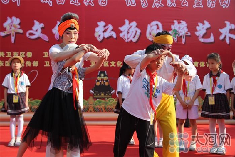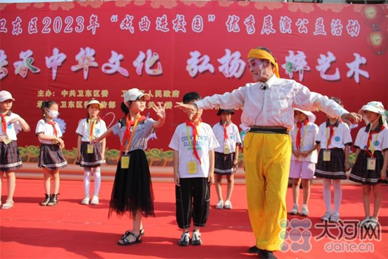 6月15日,平顶山市卫东区关心下一代工作委员会、区文旅局、区教育体育局等组织的双凤剧团走进平马路小学,与小学生互动,教唱非遗经典戏曲。通过戏曲学习、戏曲体验、戏曲欣赏等形式,感受戏曲的艺术魅力。(古国凡 安坤良/文图)