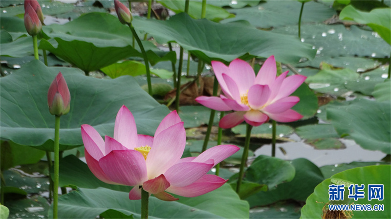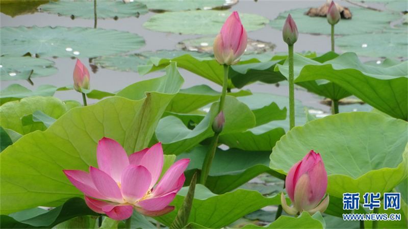 6月19日,河南省开封市西北湖湿地公园,盛开的荷花。夏日,河南省开封市西北湖湿地公园里的荷花盛开,娇艳美丽,吸引不少市民和游客前来观赏。新华网发(李俊生 摄)