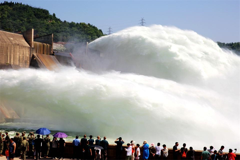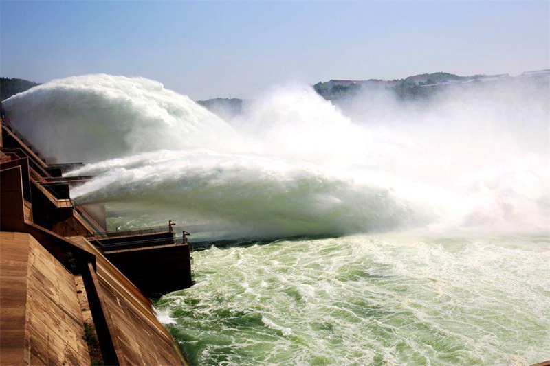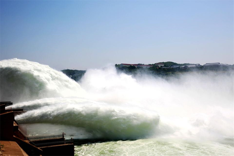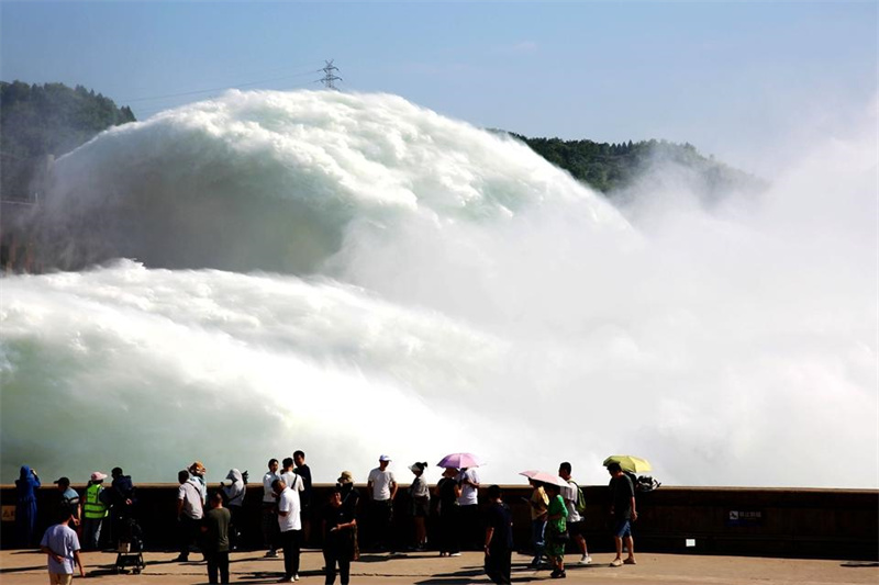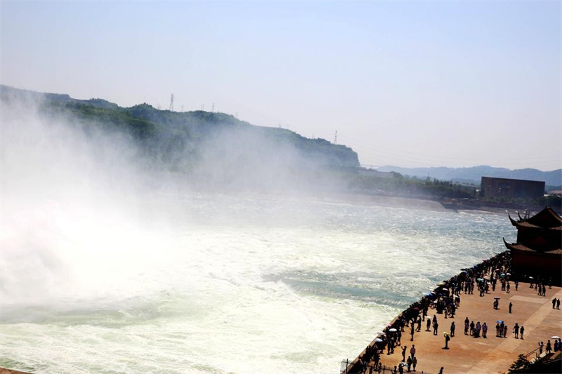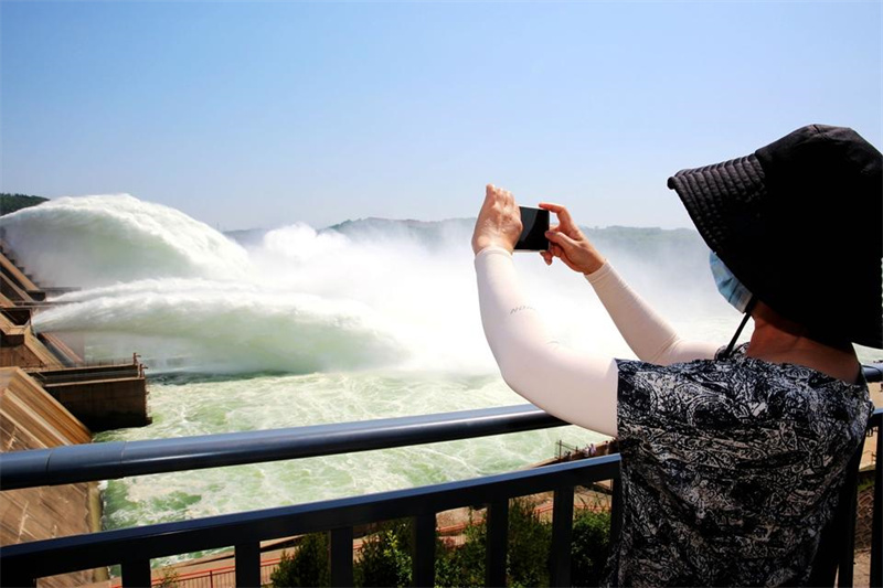 6月23日,游客在小浪底出水口观看调水调沙。端午假期,适逢黄河小浪底2023年汛前黄河调水调沙。人们走出家门,参观小浪底景区,感受黄河之水天上来的磅礴气势。(大河特约摄影师贾书琛文/图)
