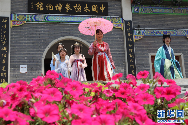 6月22日,河南省焦作市温县陈家沟,汉服爱好者在参观游览。(徐宏星 摄)