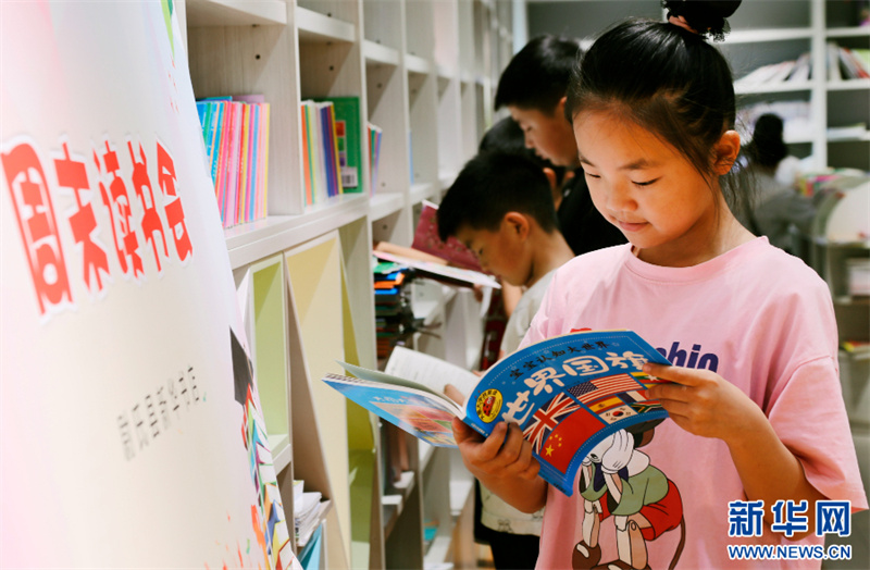 6月24日,河南省尉氏县新华书店,孩子在阅读图书。(李新义 摄)端午小长假期间,人们以各种方式休闲娱乐,享受假日时光。新华网发