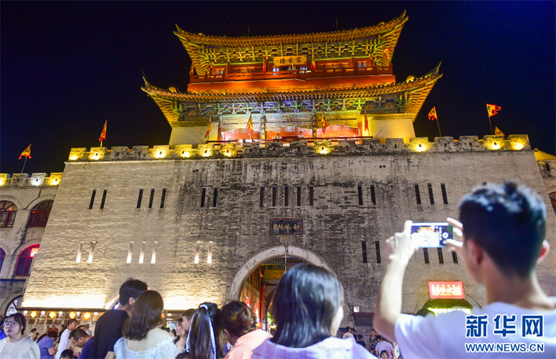 6月22日晚,河南省洛阳市老城区,游客在游玩。(黄政伟 摄)