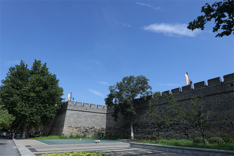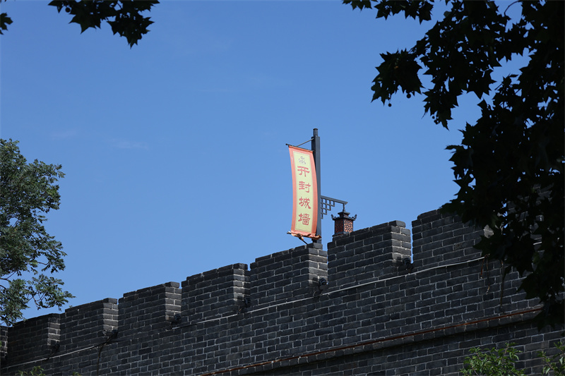7月4日,天空湛蓝,白云朵朵。在蓝天白云的映衬下,开封城墙美如画。开封+记者 袁洋 摄