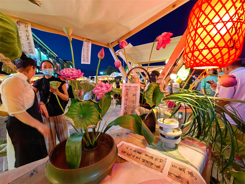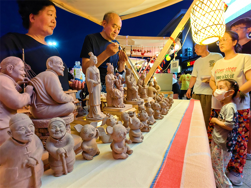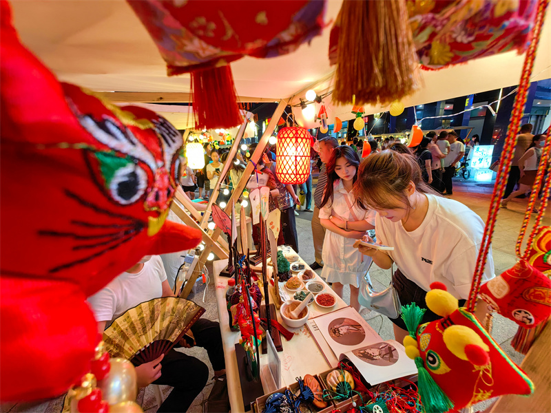 7月7日,开元广场上的非遗市集热闹非凡,琳琅满目的物品吸引了许多市民、游客“打卡”。开封+记者 石斐 摄