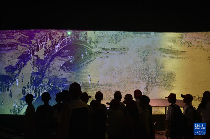 7月14日,参加研学活动的学生在开封市博物馆参观。进入暑期,许多家长和学生来到河南开封,参加丰富多彩的暑期研学活动。依托丰富的历史文化和旅游景区、文博场馆等资源,河南开封从研学基地基础设施、研学课程开发和研学指导老师队伍建设等方面着手,提升文旅资源的教育功能,高标准打造研学旅行基地。新华社记者 鲁鹏 摄