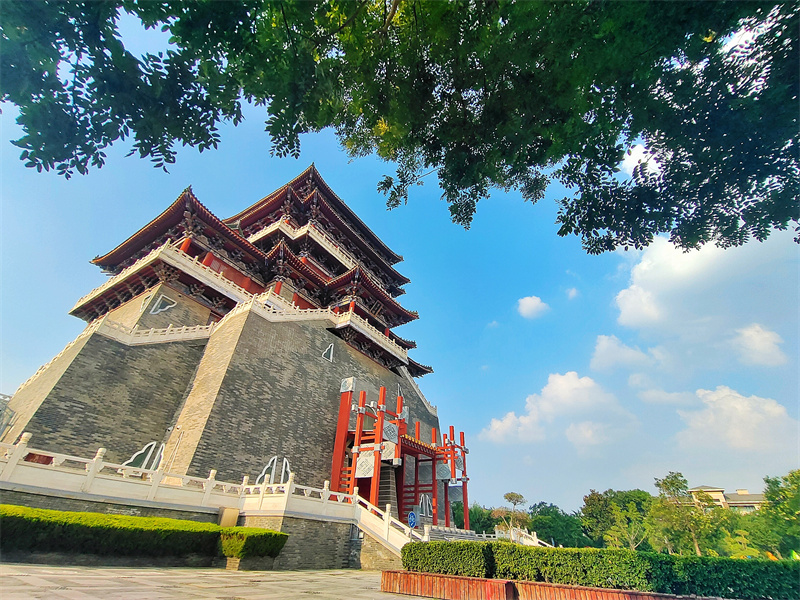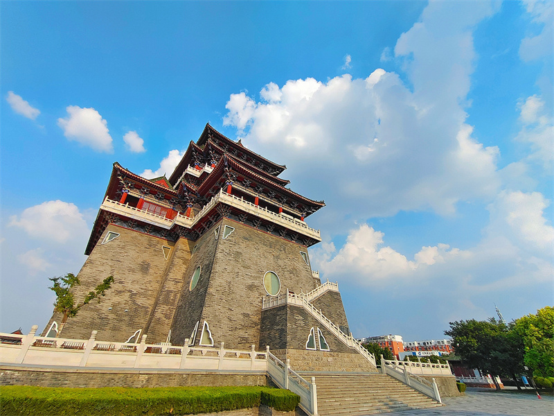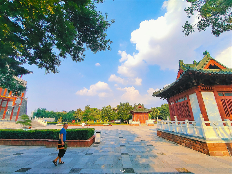 7月17日,开封市艳阳高照,蓝天白云把金明池周边的景色衬托着更加美丽。开封+记者 李浩 摄