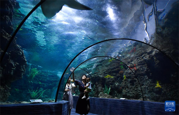 7月18日,游客在郑州海洋馆内参观。新华社记者 吴刚 摄