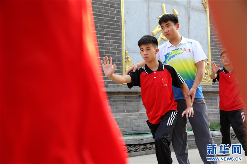 7月18日,在河南省焦作市温县一家武校,学员在教练指导下练习太极拳。