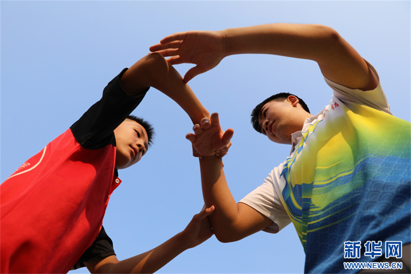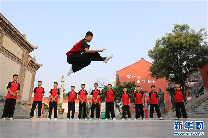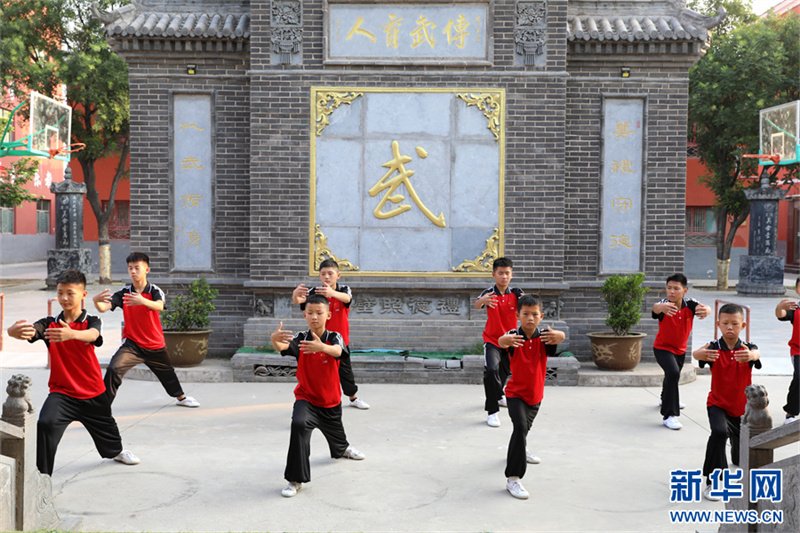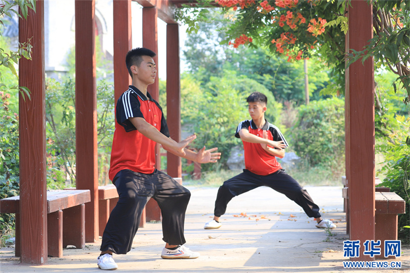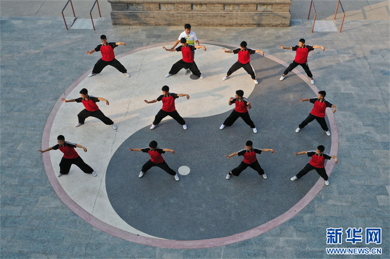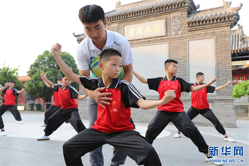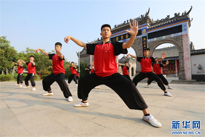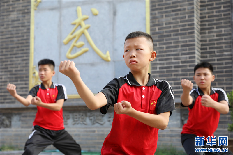 7月18日,在河南省焦作市温县一家武校,青少年学员在练习太极拳。暑假期间,河南省焦作市温县众多武校、太极拳馆、太极拳培训班成了学生暑期健身的好去处。当地的中小学生通过练习太极拳,锻炼体魄,磨炼意志,“武”动暑假。新华网发(徐宏星 摄)