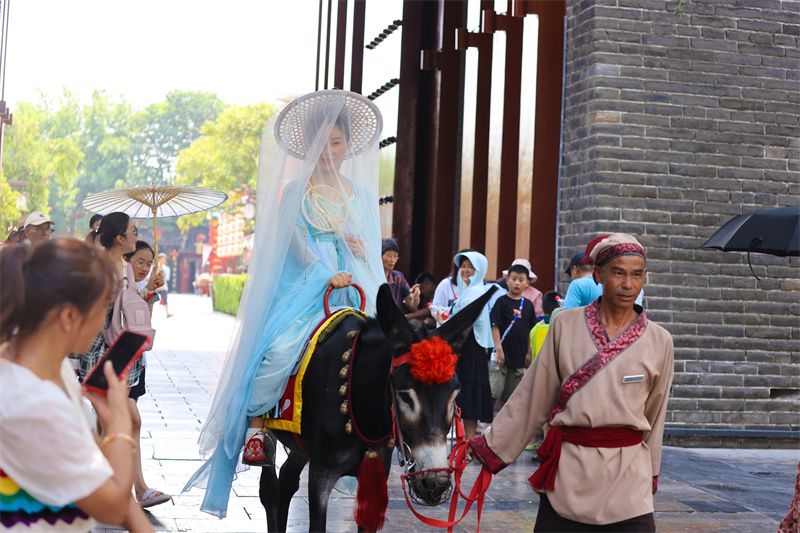 7月24日,尽管天气炎热,但游客出游热情不减。在开封市各景区内,游客逛景点、品美食、赏文化,感受古城独特魅力,乐享快乐生活。开封+记者 石斐 摄