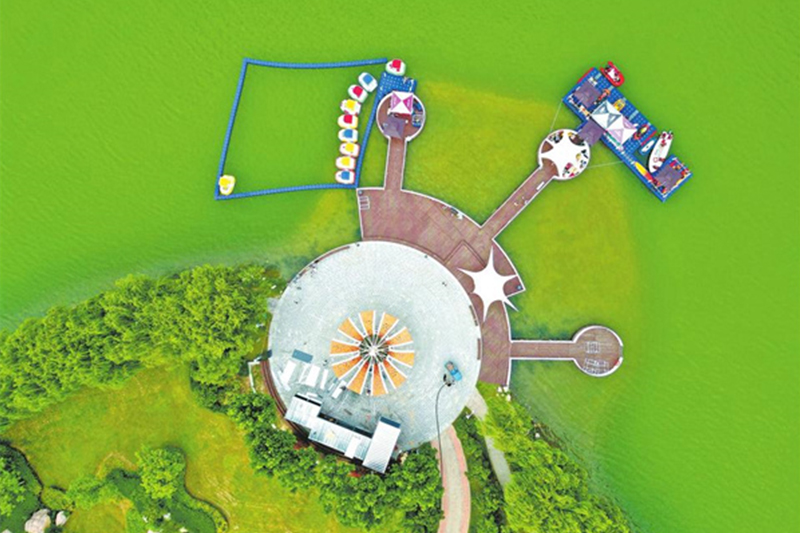 7月22日,游客在新乡市凤湖景区游玩。该景区湖水清澈,植被茂盛,暑期以来,吸引了众多市民前来消夏。记者 邓放 摄