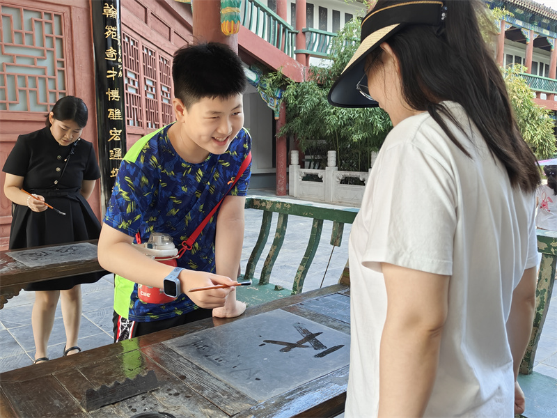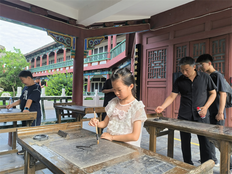 暑假,众多学生走进中国翰园碑林景区,跟着名碑名刻,感受书法的魅力。 开封+记者 袁洋 摄