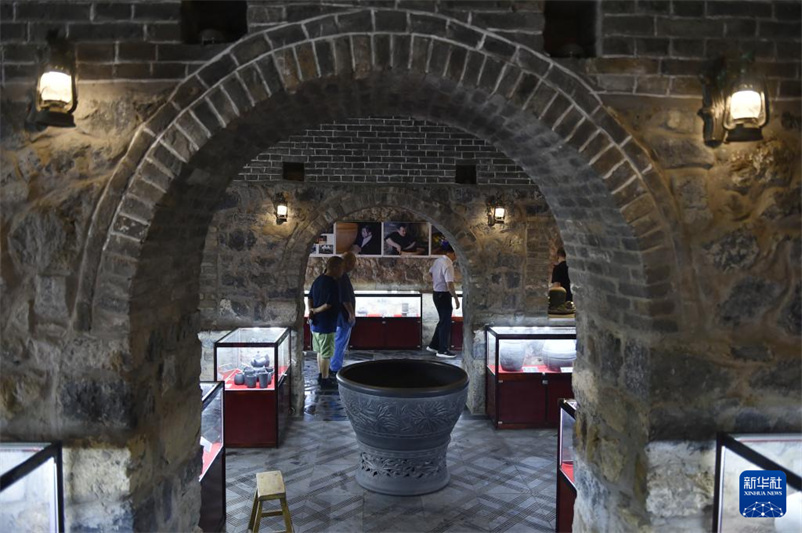 7月27日,来访者在盆窑村的黑陶制品展览馆里参观。