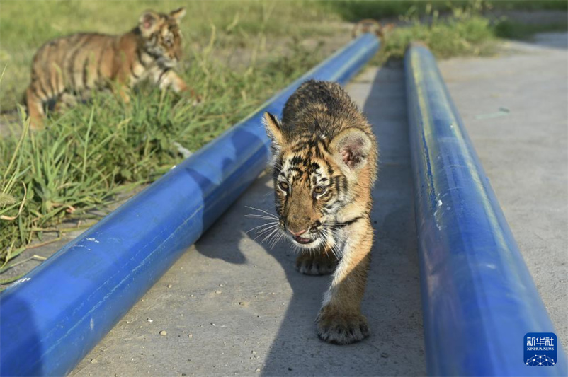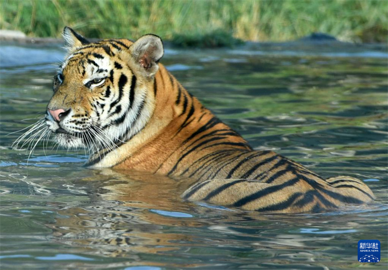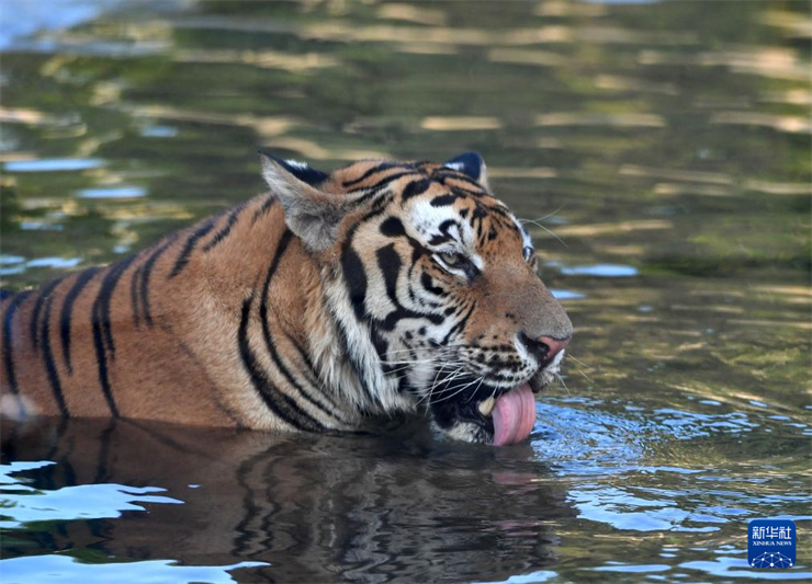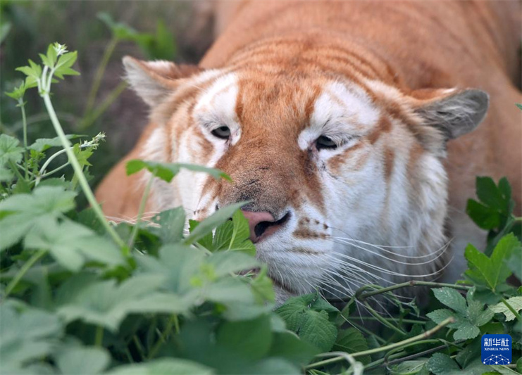 这是在沁阳市和生森林动物乐园拍摄的老虎(7月27日摄)。河南省沁阳市和生森林动物乐园是一家集研学科普、野生动物繁育及观赏为一体的综合性公园。“全球老虎日”来临之际,记者走进沁阳市和生森林动物乐园,用镜头记录园内众多老虎的“虎虎生气”。新华社记者 李嘉南 摄