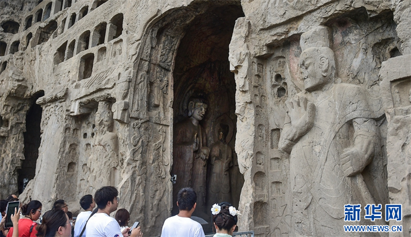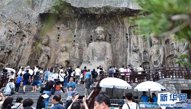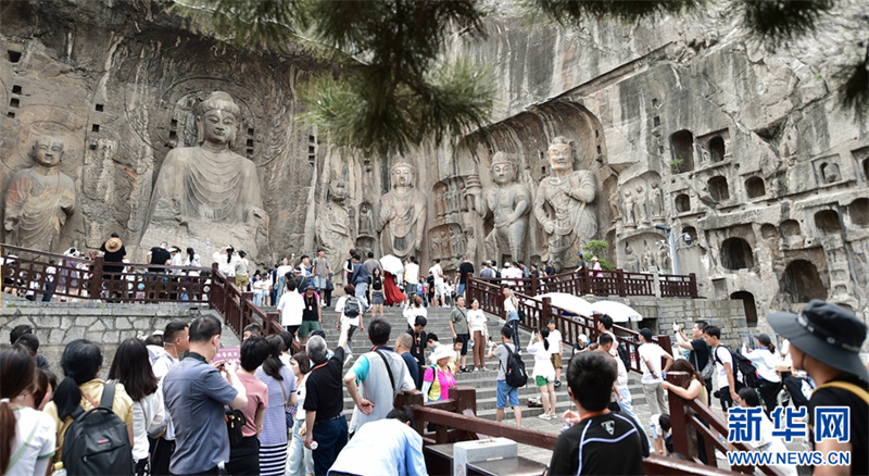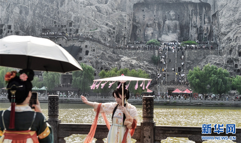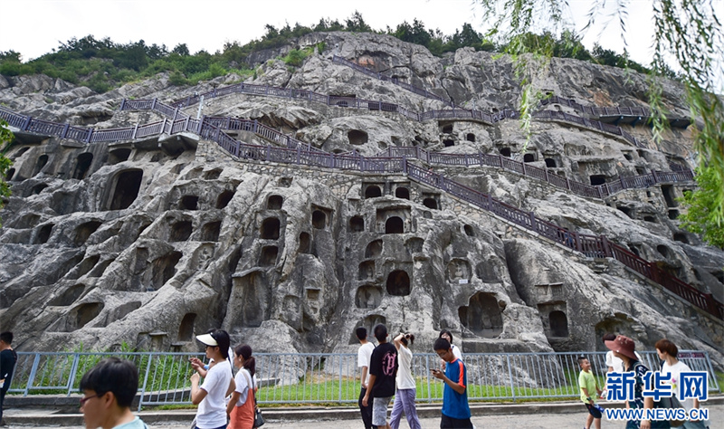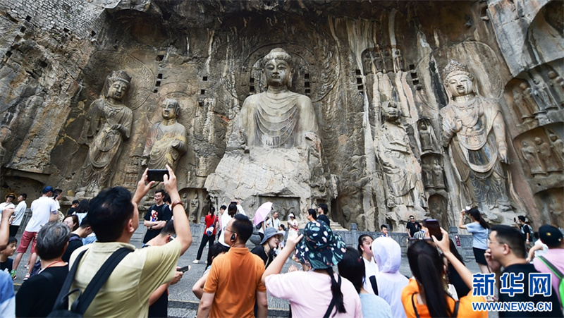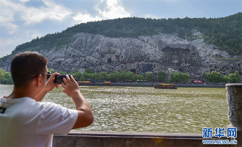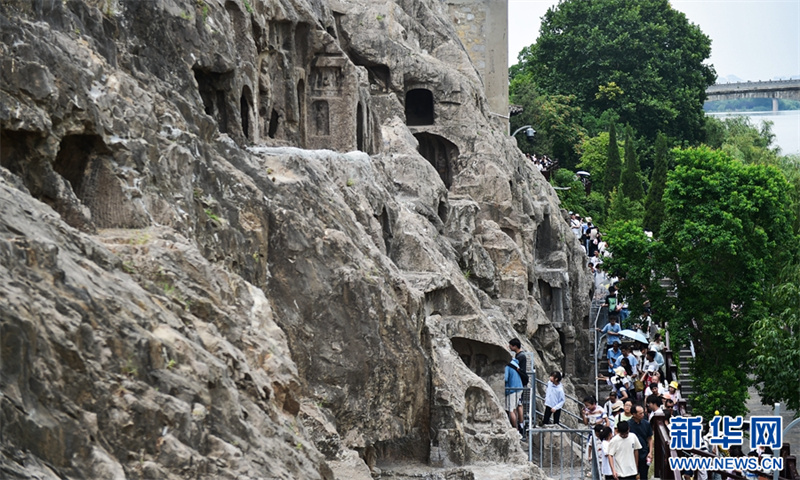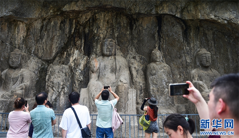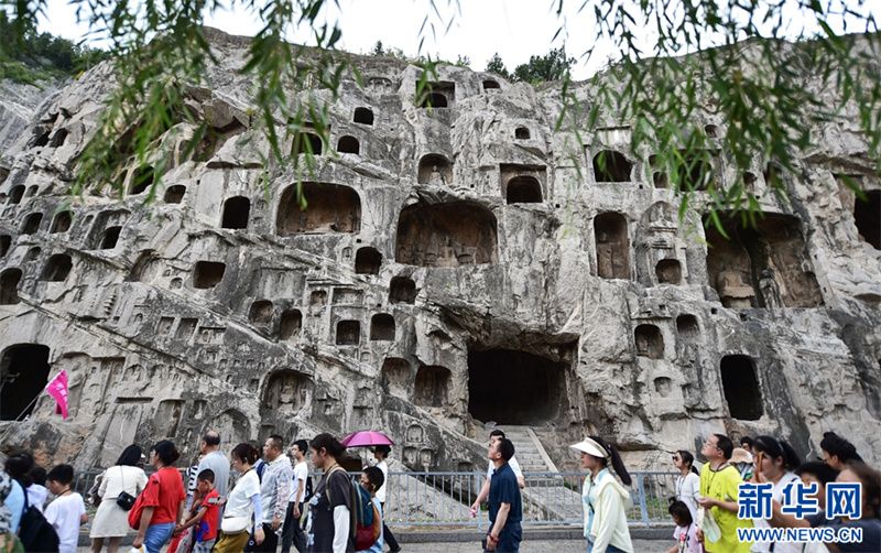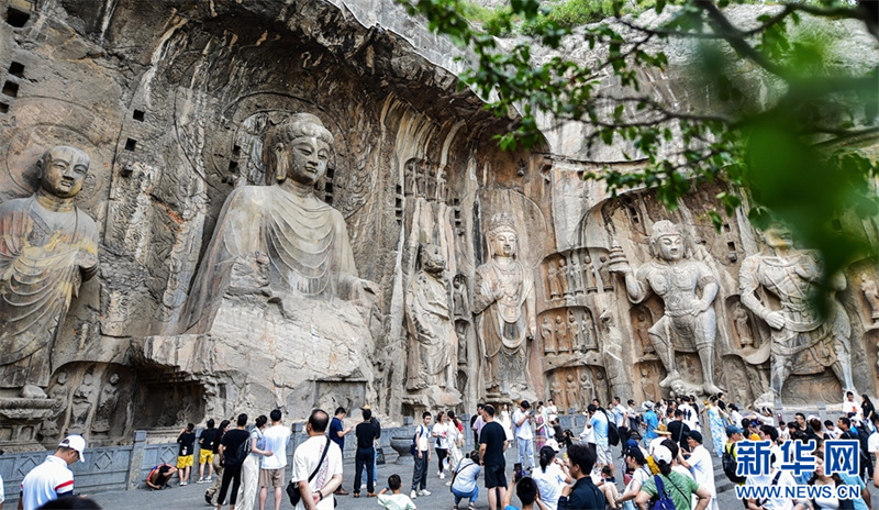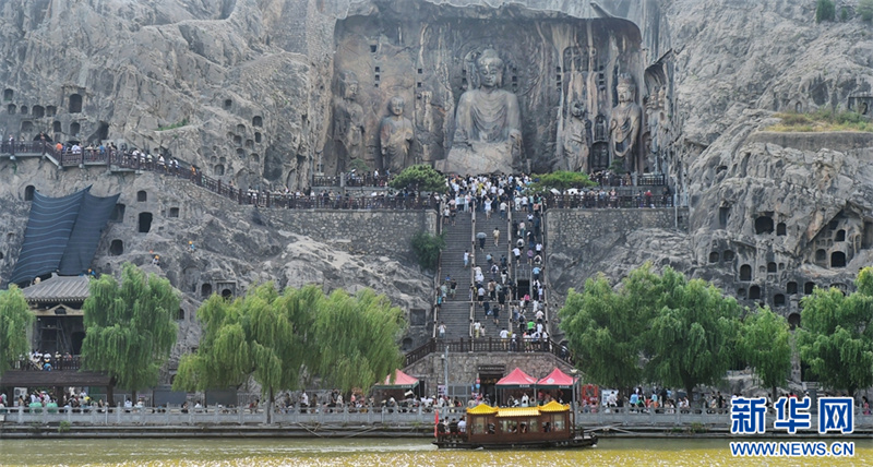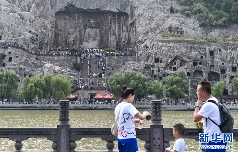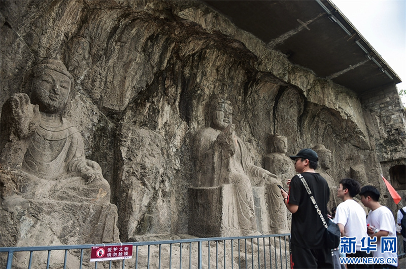 7月26日,游客在洛阳龙门石窟景区参观游览。进入暑期以来,众多市民和游客来到世界文化遗产——河南洛阳龙门石窟景区,领略千年石窟石刻造像艺术的独特魅力。据介绍,洛阳市依托厚重的历史文化积淀,加大文旅消费补贴优惠力度,文旅市场“暑期档”持续升温。新华网发(黄政伟 摄)