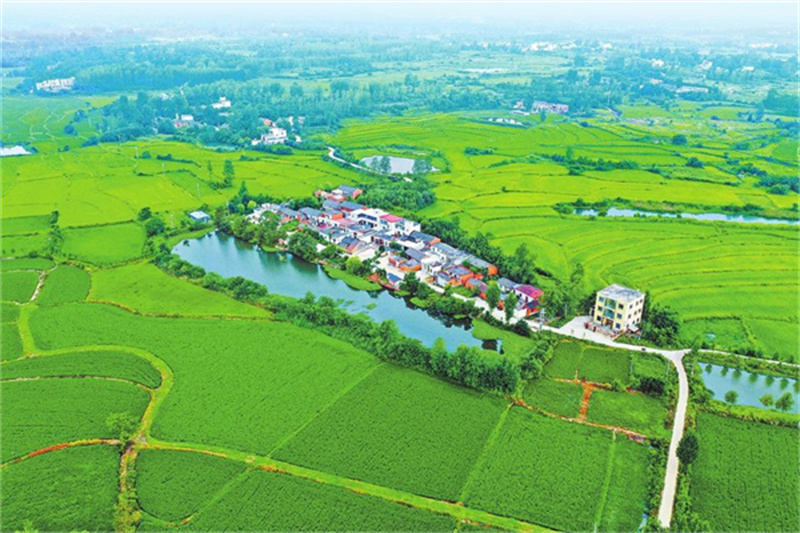 信阳市光山县罗陈乡张楼村丰收在望的稻田景色(8月1日摄)。时下,光山县水稻长势良好、日渐成熟,稻田、河流、村庄错落有致,构成一幅美丽画卷。谢万柏 摄