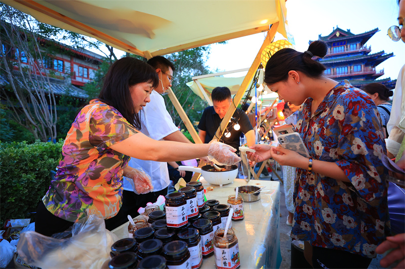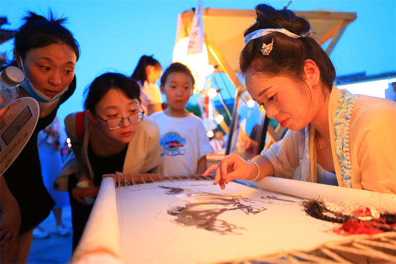 8月4日晚,第十期“欢乐周末非遗市集”在珠玑巷开市,70多项非遗项目亮相,吸引一拨又一拨市民游客近距离感受非遗魅力,共享欢乐盛夏。开封+记者 李浩 摄