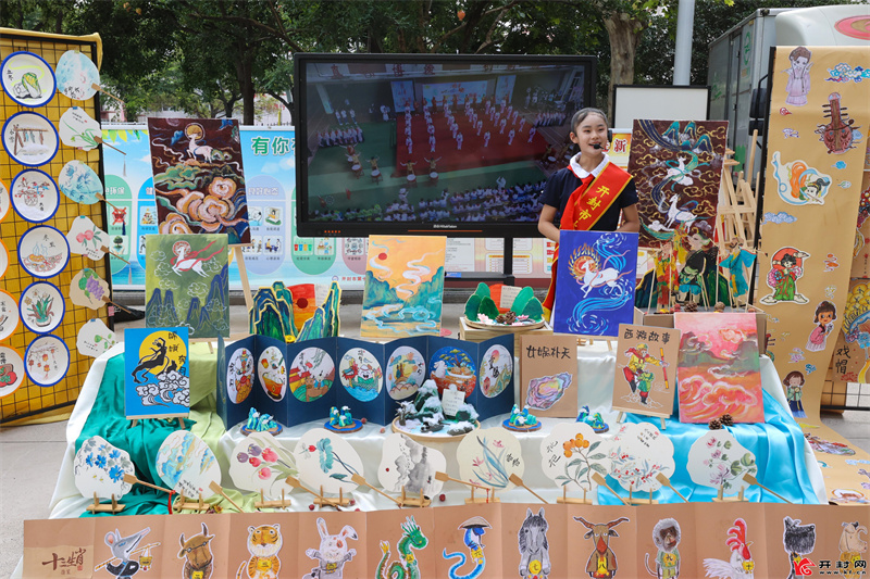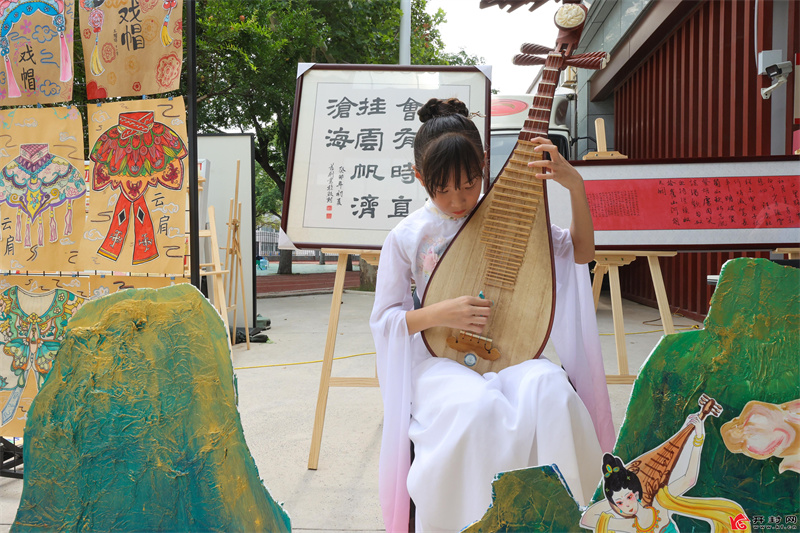 8月8日,开封鼓楼区“书香校园 ”主题文化作品展在十三中举行,来自鼓楼区各学校学生的文化作品深受人们喜爱;现场书写书法、演绎琵琶、担任讲解员,不同形式的实践活动为学生带来难忘假期。全媒体记者 石斐 摄