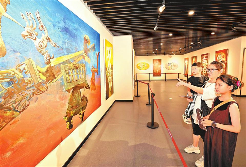 8月10日,市民在郑州市金水区市民中心文化馆新馆参观画展。全新的文化馆面积达一万多平方米,内部设有小剧场、舞蹈排练厅、器乐教室、非遗综合展厅等,目前处于试运行阶段。大河网-河南日报 记者 邓放 摄