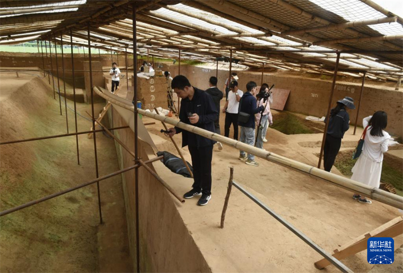 8月10日,参加集中采访的媒体记者在位于河南省安阳市的殷墟王陵遗址参观采访。近年来,河南持续做好考古发掘和研究阐释,深入挖掘历史文化蕴含的时代价值,让中华优秀传统文化焕发新活力、展现新魅力。记者近日参加“行走河南·读懂中国”考古发现集中采访活动,先后探访众多考古遗址和博物馆,实地感受中华文明发展的重要节点。新华社记者 鲁鹏 摄