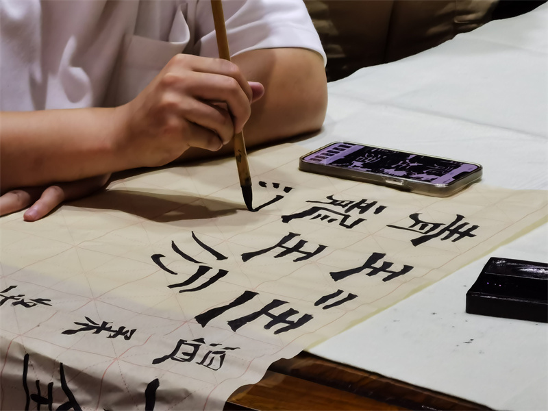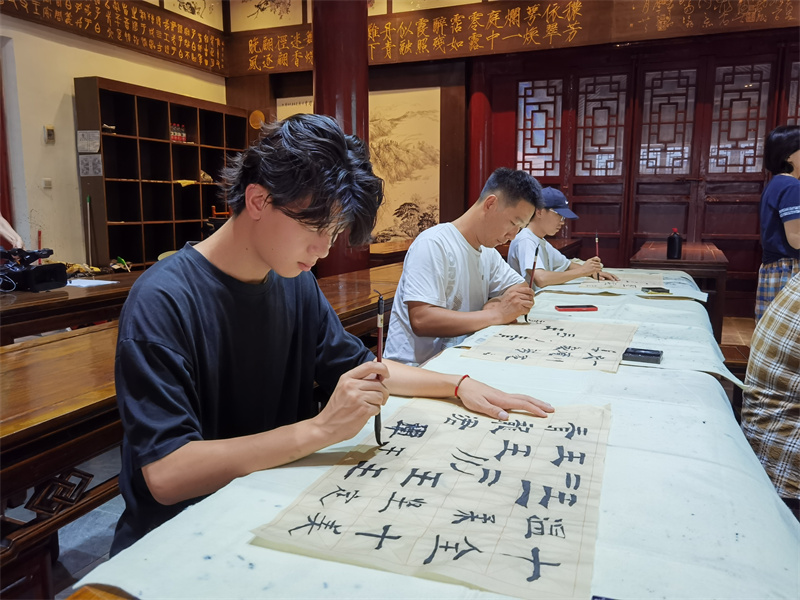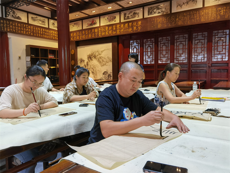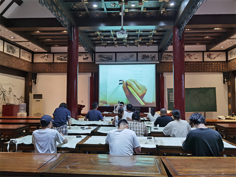 为致力于书画人才的培养、书画艺术的普及。翰园书画院在8月暑期推出了“书法公益课堂”。无论您练习的是哪种字体,只需携带一支毛笔,一本字帖,就能聆听名家授课。开封+记者袁洋 摄