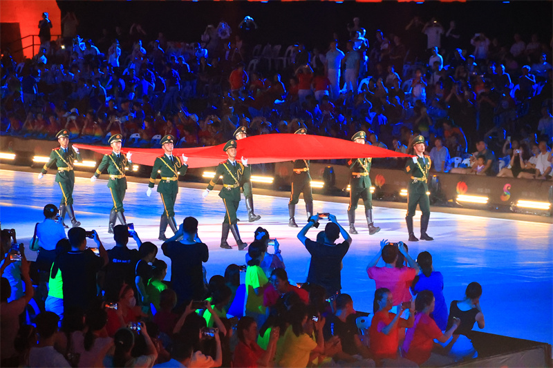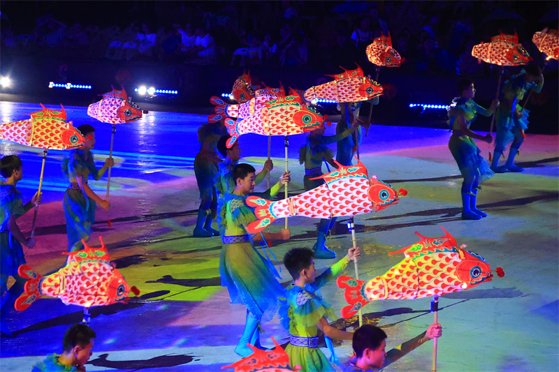 8月17日晚,河南省第十四届运动会暨第八届残疾人运动会开幕式彩排在洛阳市应天门北广场举行。开幕式于18日晚正式举行。开封+记者 李浩 摄