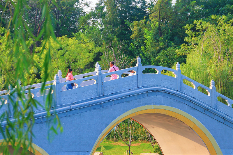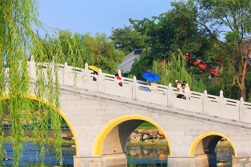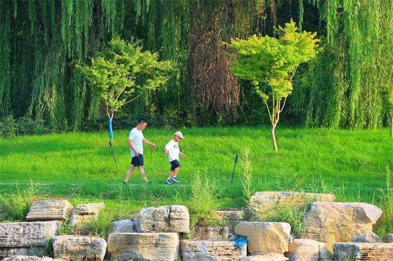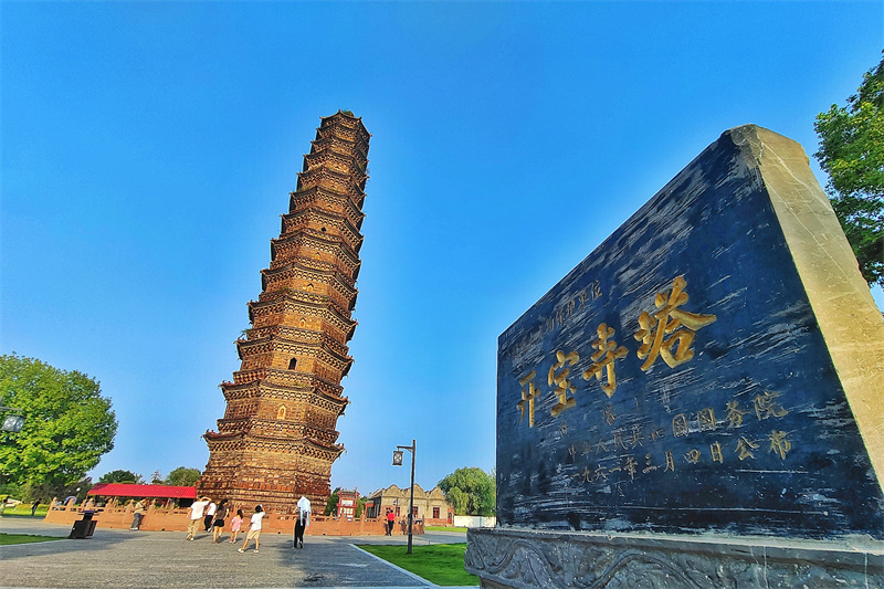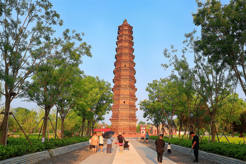 经过一场降雨后,开封天气放晴,铁塔公园风景优美,吸引游客在铁塔公园游玩赏景。开封+记者李浩8月21日摄