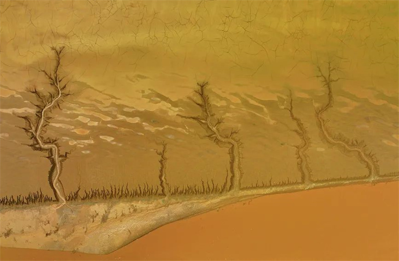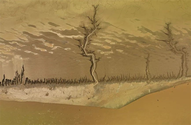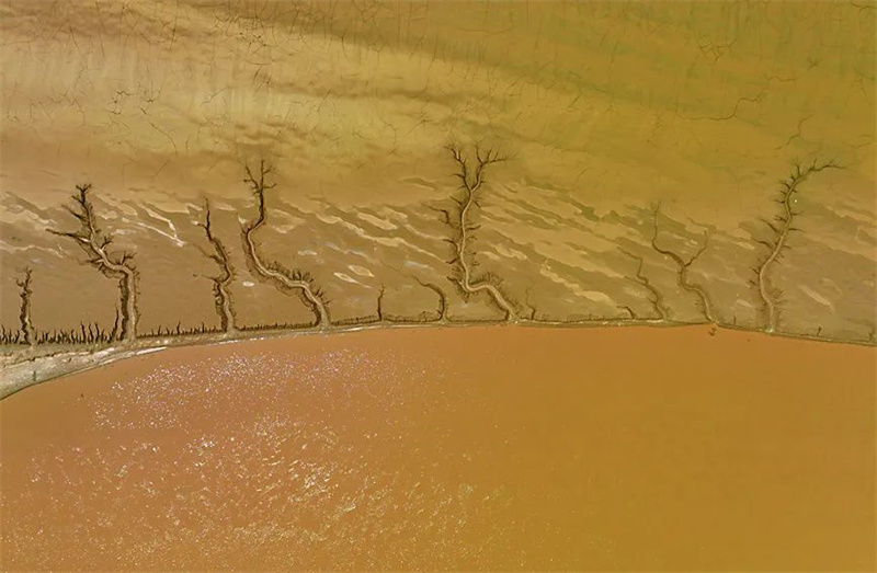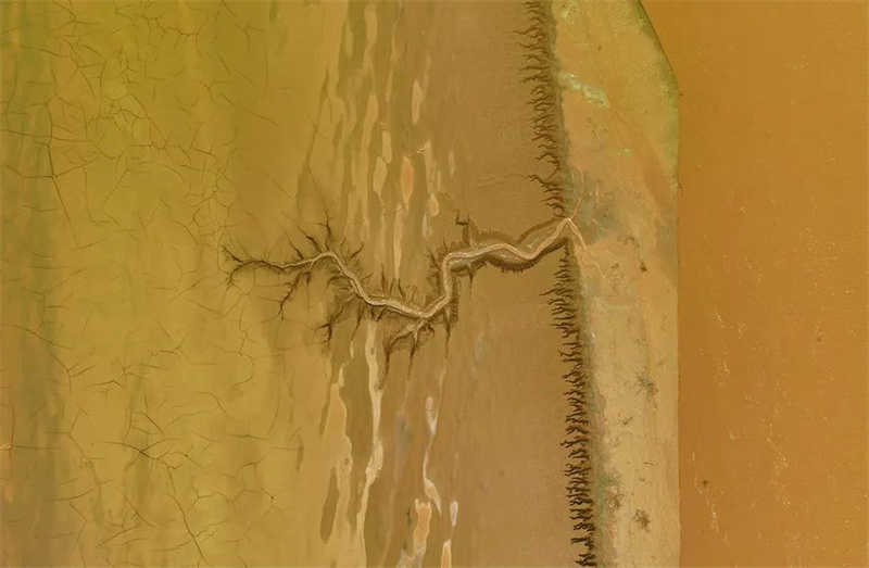 近日,黄河调水调沙结束,黄河开封市黑岗口险工段水位下降,留下大自然的美作。黄河河床被水流冲刷过后呈现出纵横交错的“脉络”,俯瞰之下宛如母亲河蜿蜒的根脉,尽显别样之美。