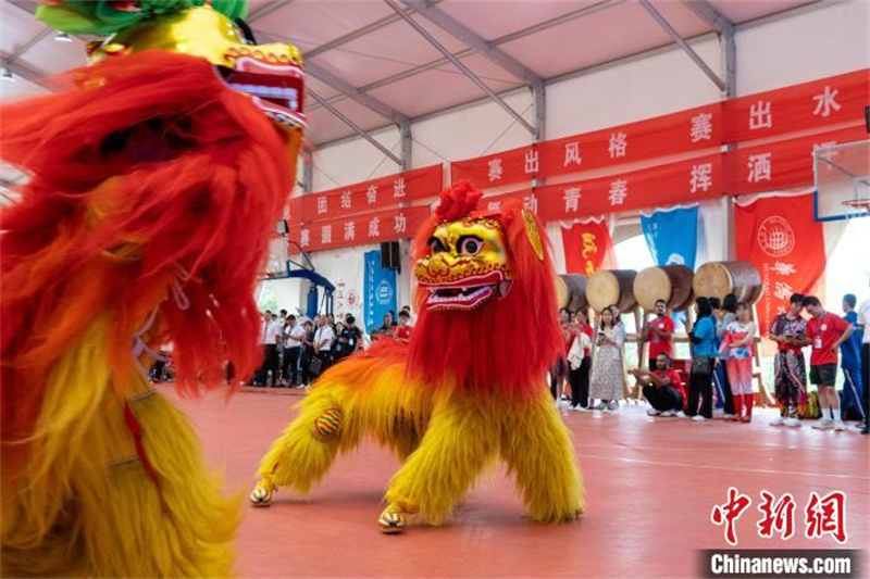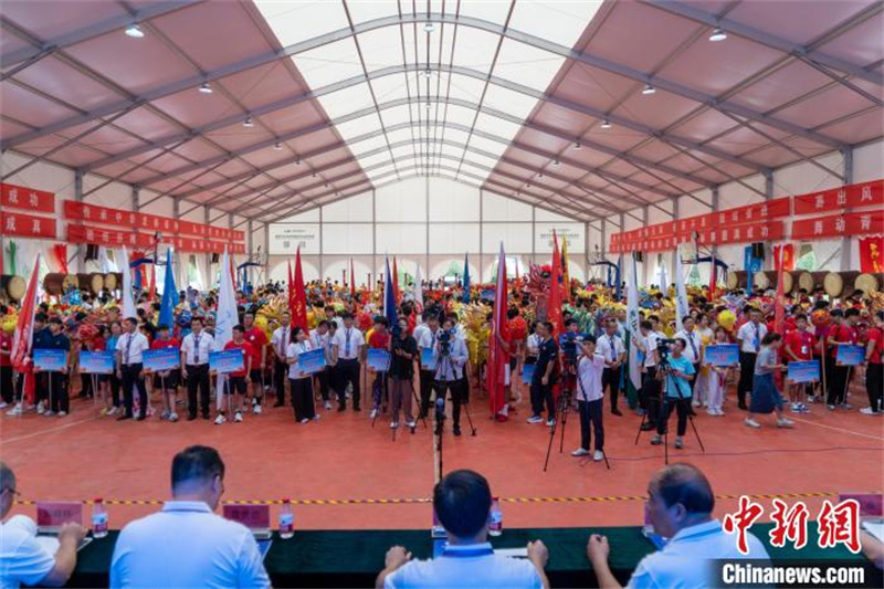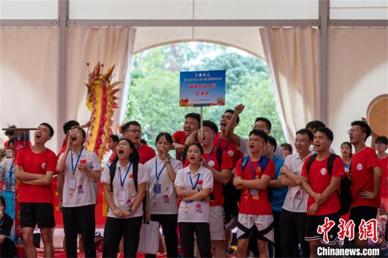 8月21日,第15届中国大学生舞龙舞狮锦标赛(舞龙项目)在河南周口启幕,吸引全国34所高等院校的794名运动员、教练员、领队参加。竞赛为期3天,分为教学双龙、男子舞龙自选、女子舞龙自选、教职工组、研究生组、留学生组、男子舞龙规定、女子舞龙规定和传统舞龙等项目。图为开幕式现场。李超庆 摄