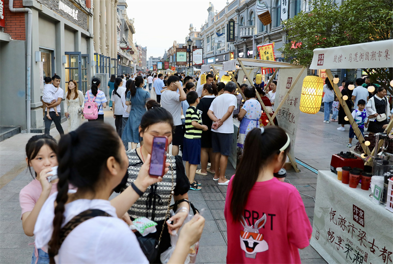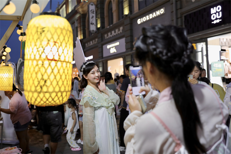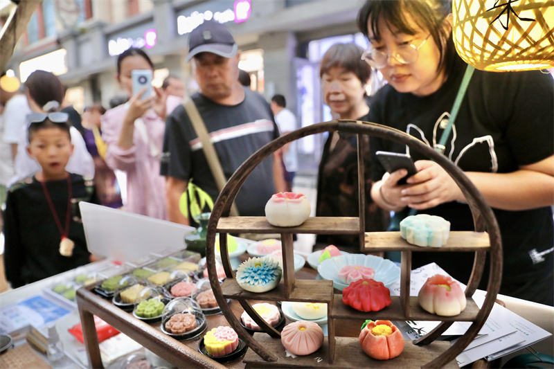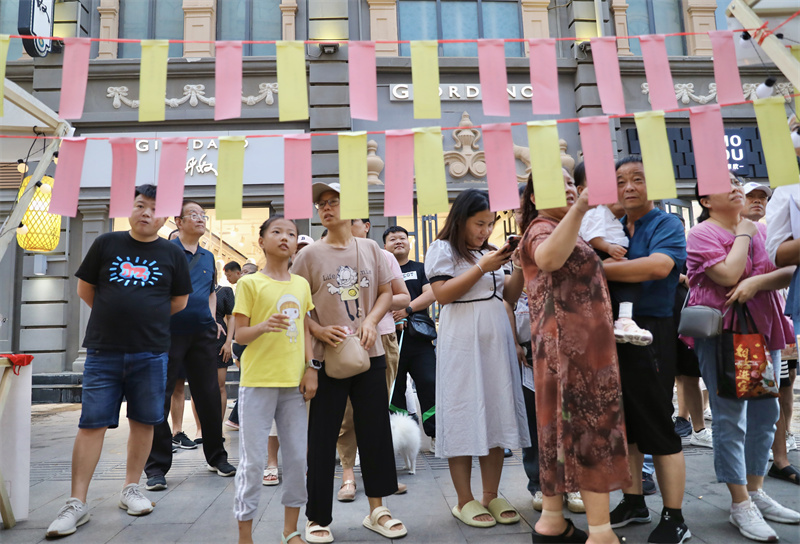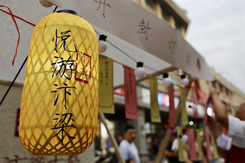 8月25日,第五期开封老字号国风市集在马道街举办,市集现场市民和游客品美食、猜灯谜,畅享“宋潮文化”。开封+记者 姜菡 摄