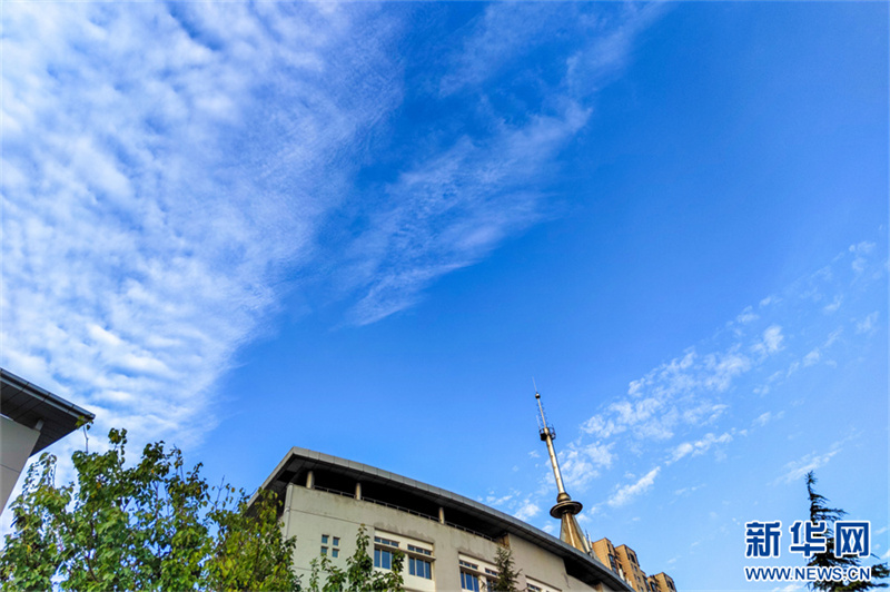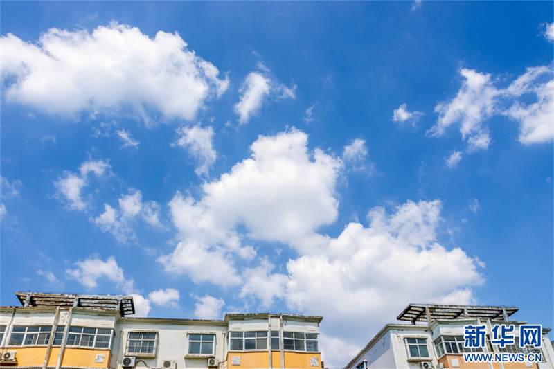 8月28日,河南省安阳市滑县,雨后的天空飘过朵朵白云,十分漂亮。据介绍,连续两天的阴雨天气结束后,河南省安阳市滑县的天空一片湛蓝,白云与蓝天,构成一幅画卷,令人心旷神怡。新华网发(王子瑞 摄)