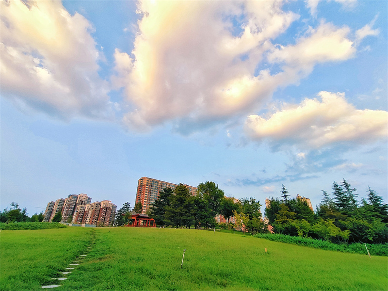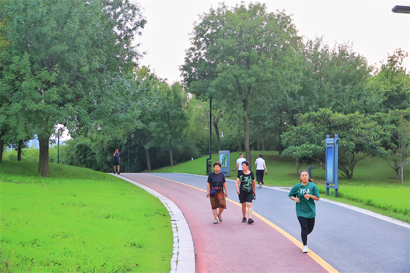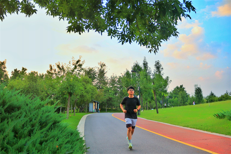 9月7日傍晚,凉风习习。市民在开封市公园绿地健身跑步,在大自然中享受美好时光。开封+记者 李浩 摄