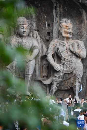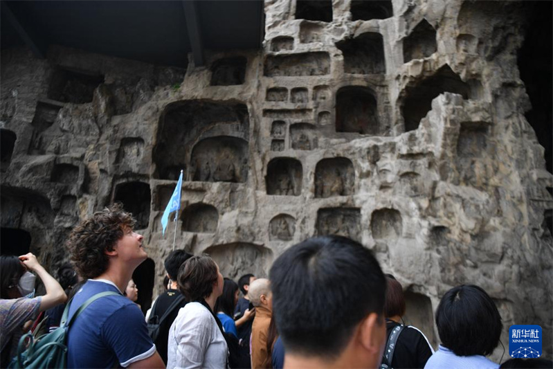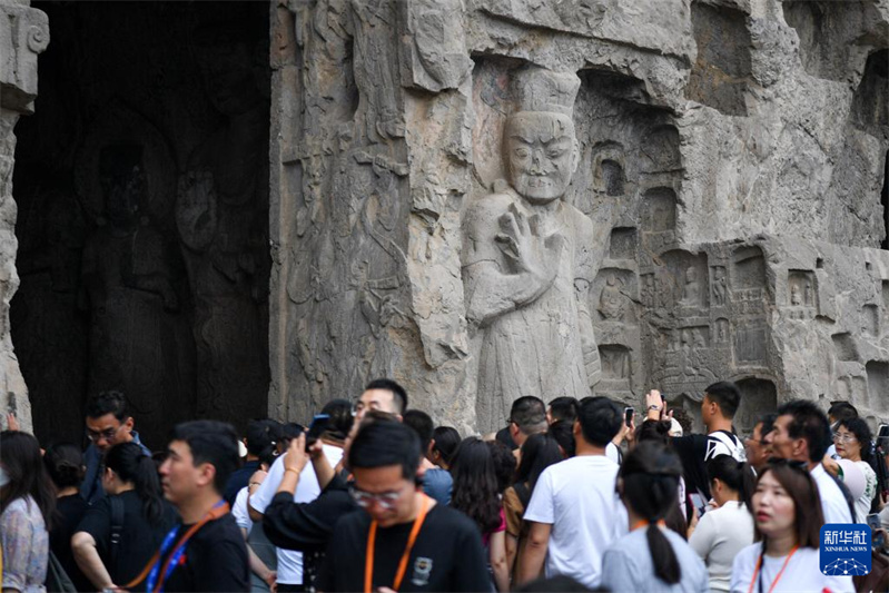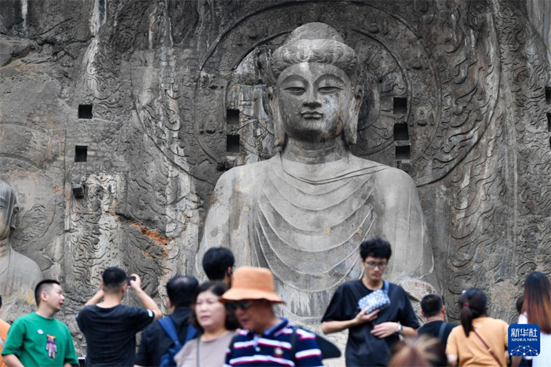 9月10日,游客在洛阳龙门石窟景区游览。据了解,龙门石窟暑期共接待游客130万人次,日平均游客接待量达2.1万人次,数据创历史新高。位于河南省洛阳市的龙门石窟开凿于北魏孝文帝迁都洛阳时期,迄今有1500多年历史,2000年被列入《世界遗产名录》。新华社记者 吴刚 摄