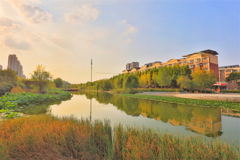 近日,天气晴朗,开封涧水河美景如画,是市民外出赏景游玩的好去处。 开封+记者 李浩 9月14日摄