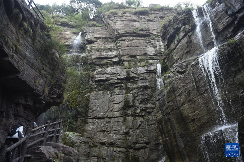 9月17日,游人在云台山景区内游览。新华社记者 戴翘楚 摄
