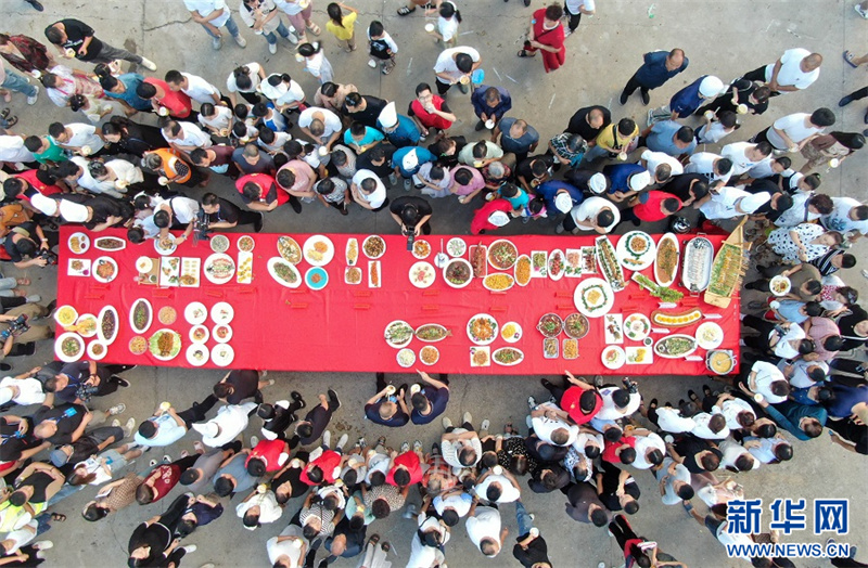9月16日,第二届洛阳“陆浑全鱼宴”大赛现场。(无人机照片)9月16日至17日,2023年第二届洛阳“陆浑全鱼宴”大赛在河南省洛阳市嵩县陆浑湖岸陆浑度假村举行。本次活动旨在挖掘、传承、研发具有陆浑特色的鱼宴美食。在现场,用腌、煎、炸、熘、炖、蒸等各种烹饪方式制作的陆浑鱼,吸引了众多游客前来品尝。(王世光 李卫超 摄)